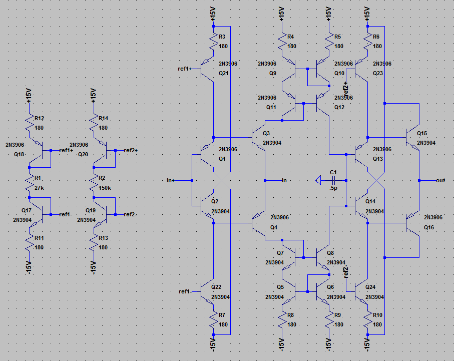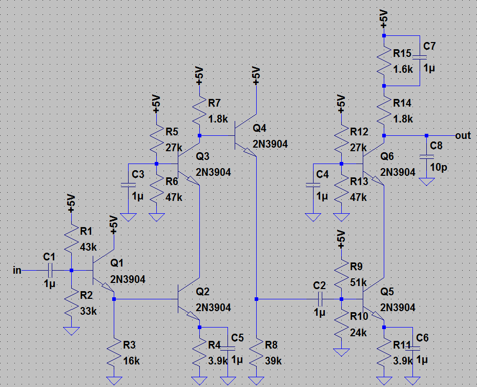The following is a discrete transimpedance amplifier.